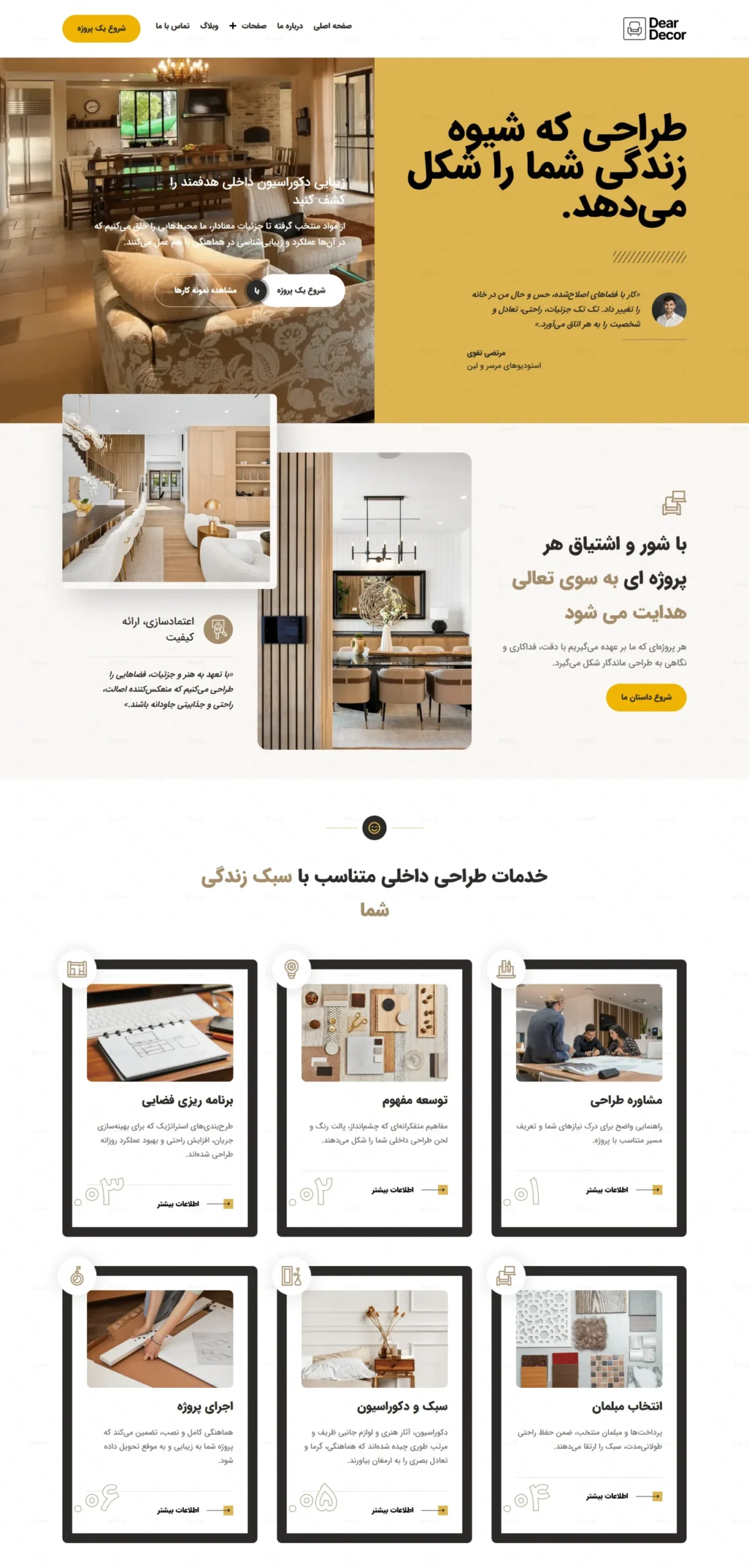 - صفحه اختصاصی خدمات (طراحی داخلی، بازسازی، اجرا و …)