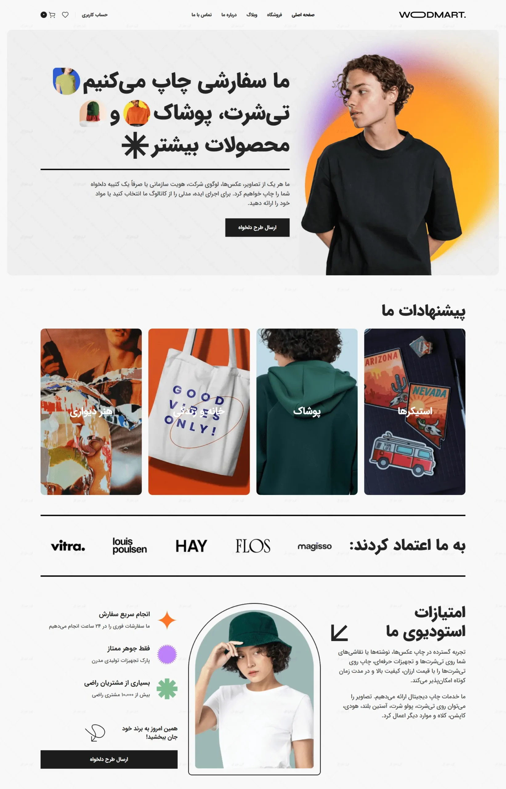 سایت آماده فروشگاه تیشرت و محصولات چاپی با وردپرس و وودمارت